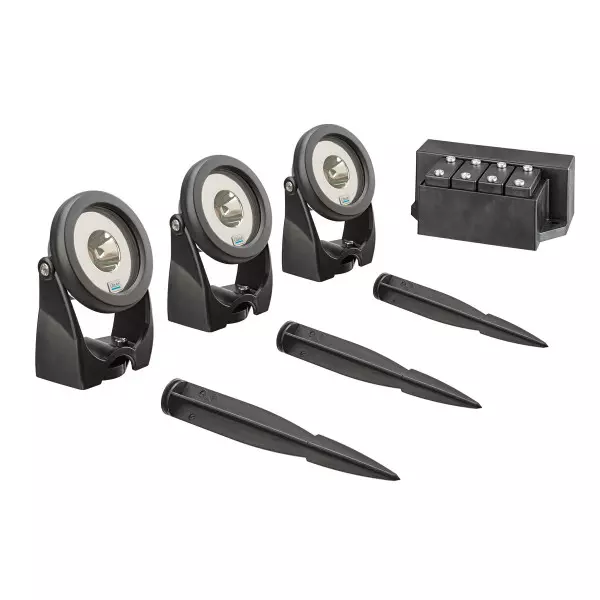 - Kit complet avec trois spots LED pour un éclairage jardin sur mesure